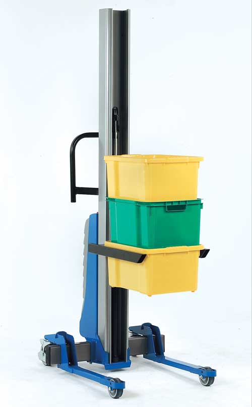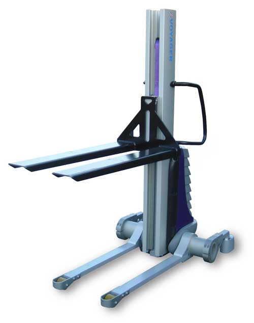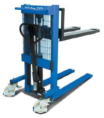 Gerbeurs mobiles: - capacités de levage de 250 à 1000 kg, - hauteurs de levage de 1500 à 3300 mm, - à voie étroite: les fourches couvrent les jambes, convient aux palettes (EURO) ouvertes, boxes et caisses, - ou à voie large: les fourches sont situées entre les jambes et réglables en largeur, convient aux palettes fermées, - mât fixe ou télescopique suivant la hauteur de levage, - pompe à timon ou pompe électrique entraînée par batterie, - le déplacement est toujours à bras d'homme. High Lift Pallet Mover: - levage jusqu'à 820 mm, - capacité de levage 700 of 1000 kg, - à voie étroite: les fourches couvrent les jambes, convient aux palettes (EURO) ouvertes, boxes et caisses, - ou à voie large: les fourches sont situées entre les jambes et réglables en largeur, convient aux palettes fermées, - pompe à timon ou pompe électrique entraînée par batterie, - le déplacement est toujours à bras d'homme. Options: - mise à niveau automatique pour empilage ou dépilage, - éperon au lieu des fourches - tôle pleine sur les fourches 555 x 1550 mm, - convoyeur à rouleaux sur les fourches, 555 x 1550 mm, - crochet de levage Tableau et prix des modèles standards |